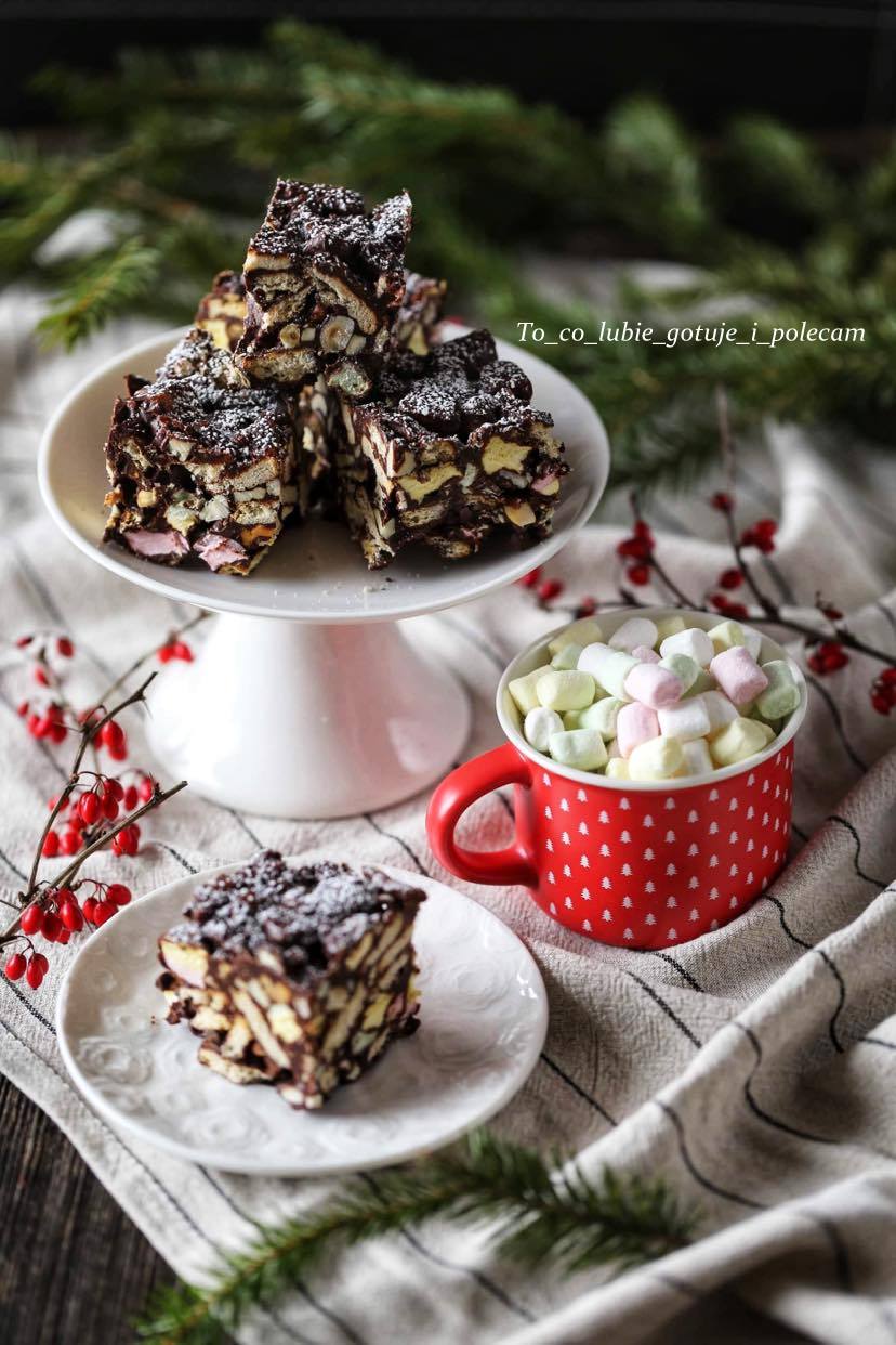 Rocky Road Cake – czekoladowy deser z piankami marshmallows.